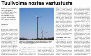 Tuulivoima on myös paljolti kiinni sääolosuhteista. Tuulen puute näkyy merkittävästi pörssisähkön hinnassa tyynellä säällä. Laiteyksiköt ovat suhteellisen kalliita ja ”tuulimyllyt” ovat selkeä näkö- ja ympäristöhaitta asuin- ja luonnonsuojelualueiden läheisyydessä. Tätä seikkaa ei pidä vähätellä.