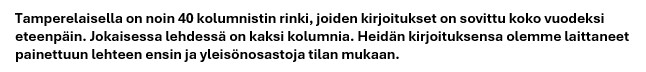 Kolumnit ovat toimituspolitiikan sopivaksi katsomien henkilöiden määrämittaisia mielipidekirjoituksia.